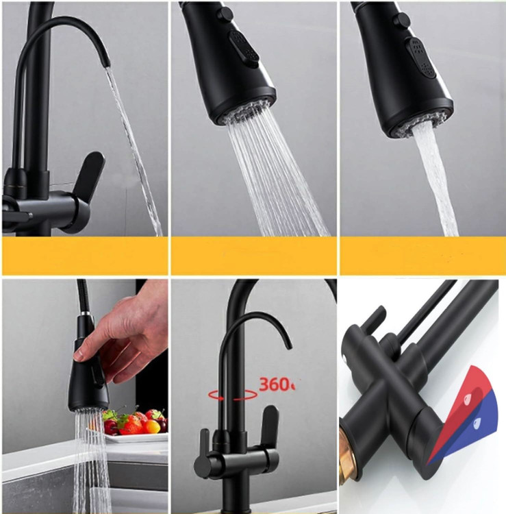 شیر ظرفشویی دومنظوره تصفیهدار مدل شاوری ۴ حالته هوادیائو – طراحی مدرن و کاربردی
