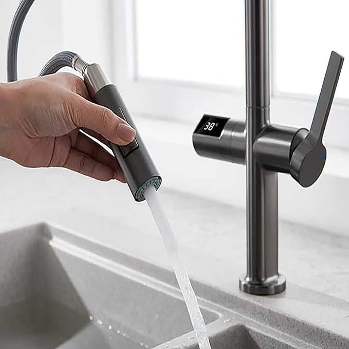 شیر ظرفشویی شاوری دیجیتال هوادیائو با نمایشگر حرارت لحظهای، کیفیت بالا و نصب بدون نیاز به متخصص، برای آشپزخانهای مدرن و شیک