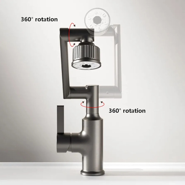 ویژگی اصلی این شیر این است که میتوان آن را به اندازه 360 درجه چرخاند تا به کاربر امکان دسترسی آسان به آب در هر زاویهای که نیاز دارد را بدهد. این ویژگی مخصوصاً در حمامها و آشپزخانهها که نیاز به دسترسی آسان به آب در جهتها و زوایای مختلف دارند، بسیار مفید است.