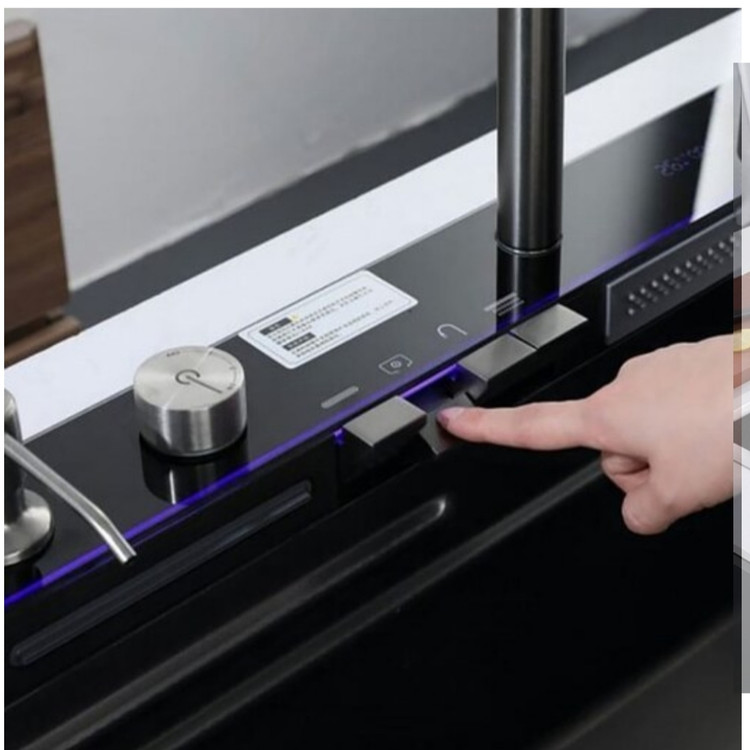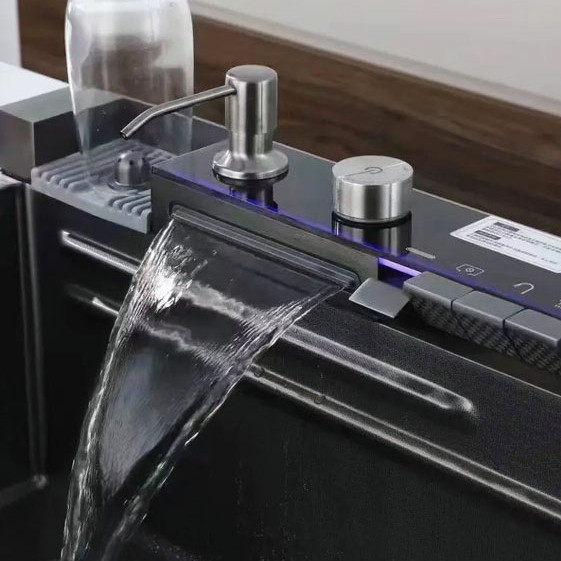 سینک ظرفشویی آبشاری هوشمند مدل پیانویی 5 کلید نمایشگردار دیجیتال طرح لانه زنبوری sus304 گرید A برند هوادیائو اصلی رنگ دودی 90 سانت