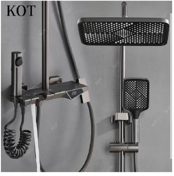 دوش پیانویی در واقع طراحی و کلیت دوش پیانویی بر اساس ساز پیانو شکل گرفته است به گونه ای که یکسری از کلیدها در بخش متوسطه این دوش نصب شده است که متناسب با فشار و دمای آب این محصول ارتباط دارد. دوش حمام پیانویی دیجیتال هایشنگ دای مشخصات زیر میباشد : رنگبندی دودی جنس برنچی با لوله استیل دارای نمایشگر دمای آب و تایمر دارای ۴ حالت مختلف پاشش آب دارای ۴ دکمه پیانویی برای کنترل راحت آب فشار آب بسیار زیاد قابلیت تنظیم دمای آب به صورت اهرمی دارای گوشی با کیفیت با تنظیم چند حالته دارای شات آف با شلنگ فنری چرخش دوش ۳۶۰ درجه طراحی مدرن وزن و کیفیت بالا